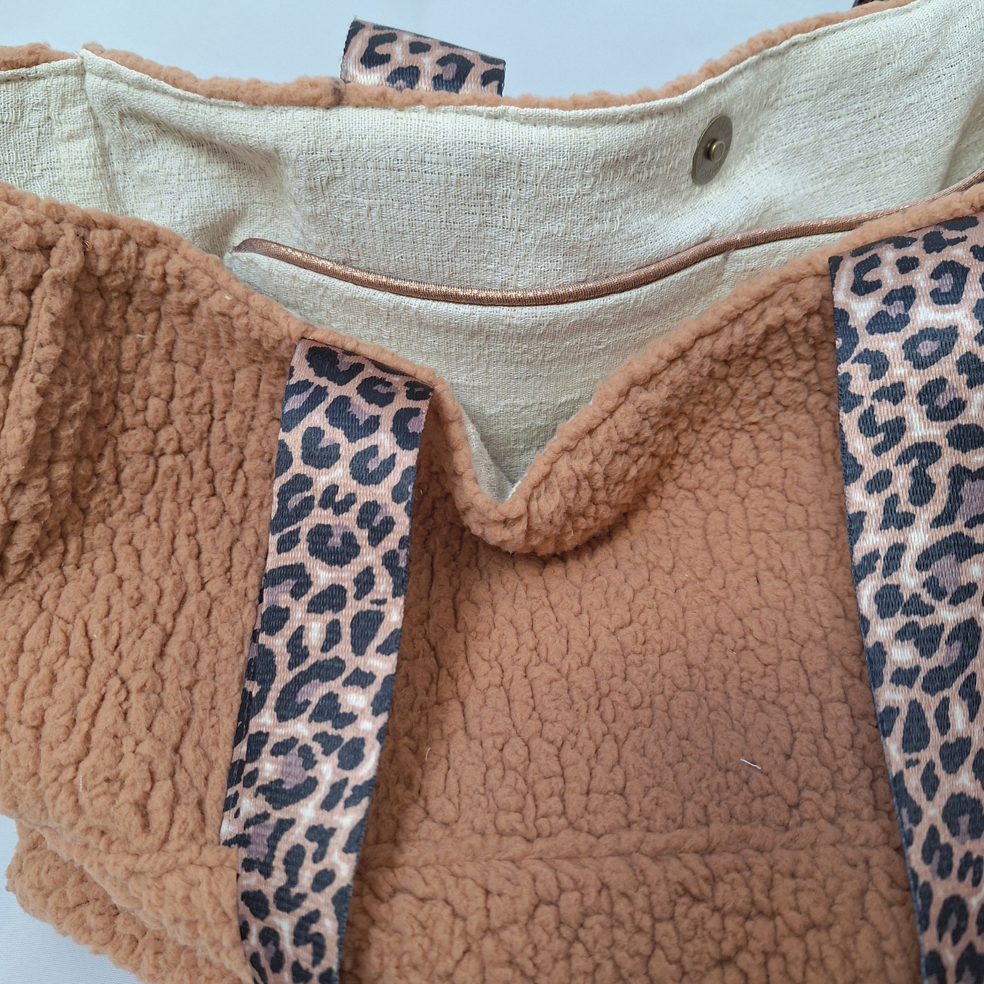 Parfait pour ajouter une touche de couleur à votre tenue d'hiver, ce grand cabas tout doux est fonctionnel,léger mais robuste grâce à ses larges anses motif léopard: il est idéal pour pour transporter tous vos effets personnels au quotidien.