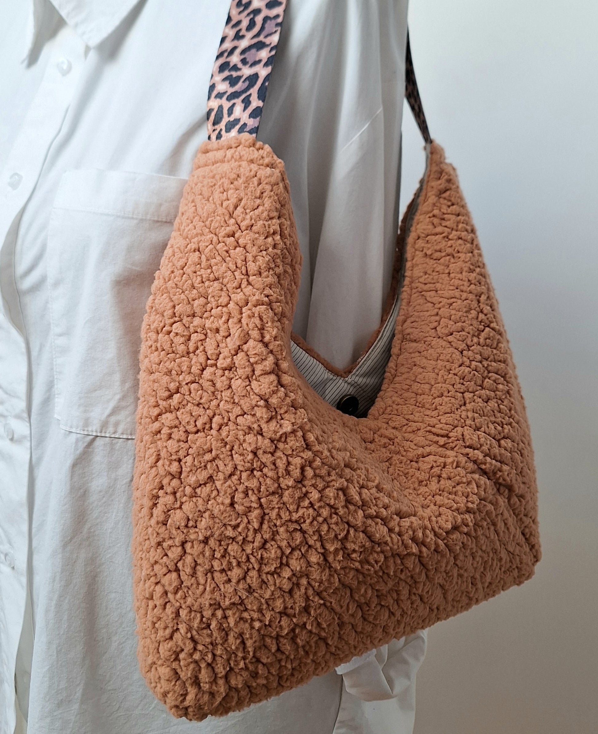 De forme et matière tendance , élaboré par pliage, le sac SIDONIE a une allure décontractée. Léger, il peut aussi se glisser très facilement dans votre sac de voyage. Porté épaule très confortable. . Une poche plaquée intérieure. Fermeture par bouton pression aimanté. Anse motifs léopard