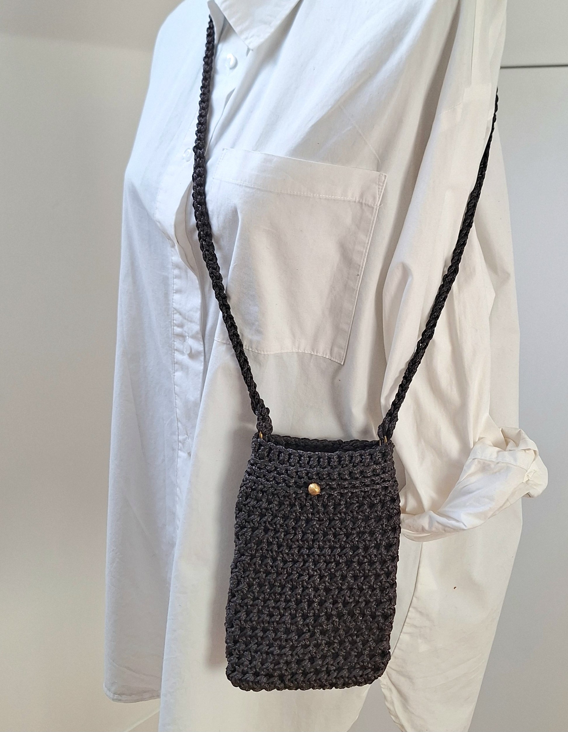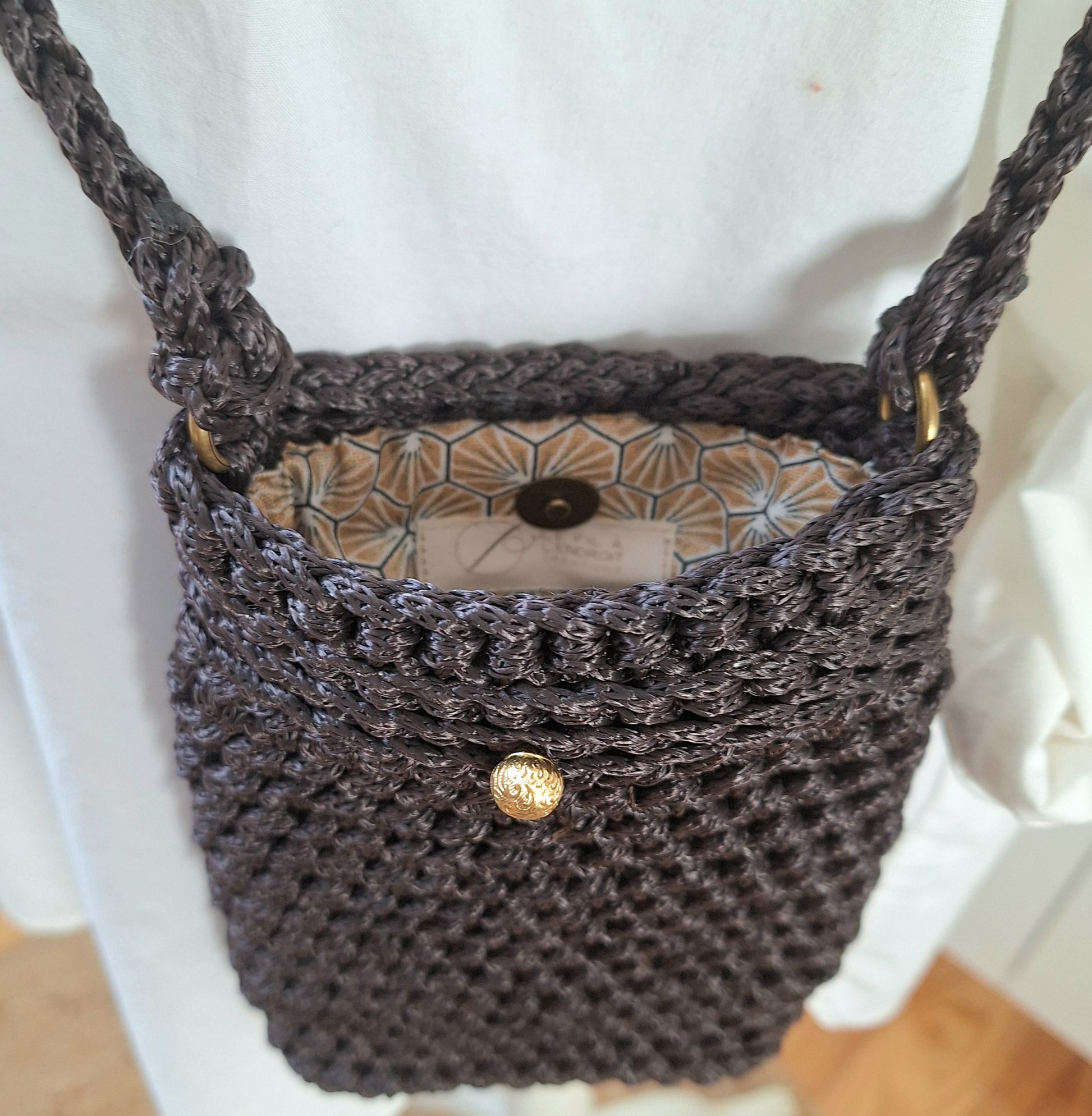Conçue pour se déplacer avec le strict minimum, cette pochette crochetée et doublée vous permet d'y glisser votre téléphone ET, grâce à sa poche plaquée intérieure, votre CB, clés... . Porté bandoulière croisée ou en collier. Celle-ci peut s'utiliser à toute saison grâce à son fil imperméable marron glacé.